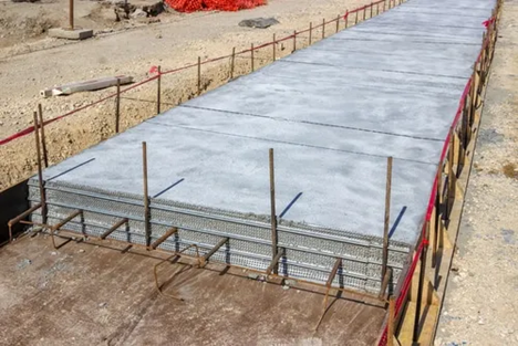 Prior to pouring a new concrete slab next to an already completed piece, construction joints are installed.